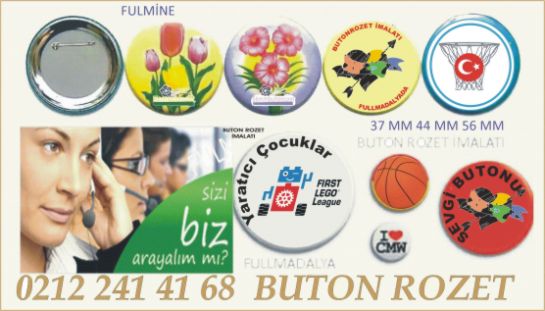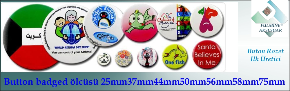 Buton Rozet Ölçüleri : 25 mm, 37 mm, 44 mm, 50 mm, 56 mm, 75 mm. Kaliteli baskı ve titiz çalışma ile en kısa zamanda uygun fiyatlar ile buton rozet imalatı buton rozet, çanta rozeti, metal kokart diye tabir edilen arkası çengel iğneli rozettir.